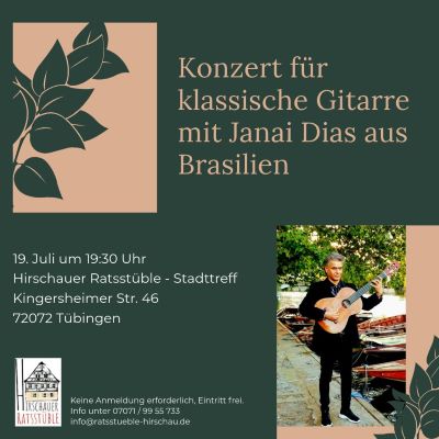 Klassische brasilianische Musik Rechtzeitig zu den (hoffentlich) sonnigen Sommerwochen präsentiert das Ratsstüble in Hirschau „heiße“, temperamentvolle, südamerikanische Musik. Janai Souza Diaz ist Gitarrist und erhielt seine musikalische Ausbildung am „Tatui…